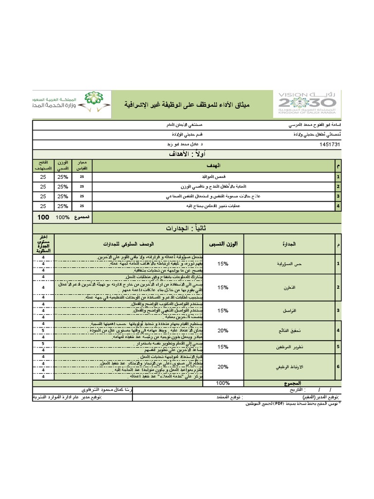 نموذج ميثاق الاداء والتقييم للوظيفة غير الاشرافية اسامة